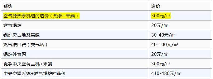 因此,空氣源熱泵供暖制冷系統的造價比中央空調+燃氣鍋爐系統的造價低110-180元/㎡.