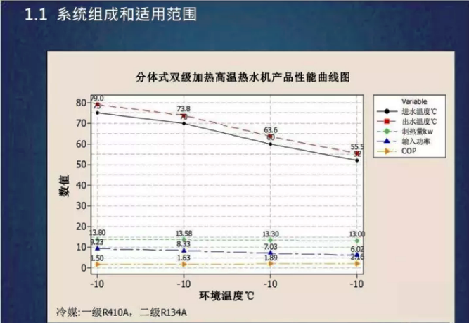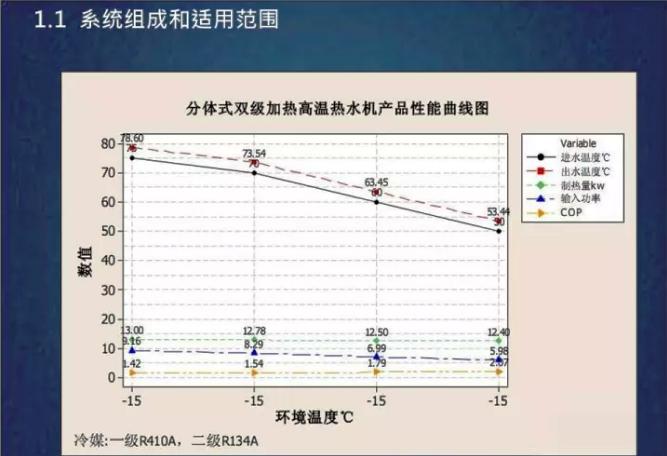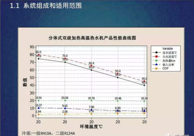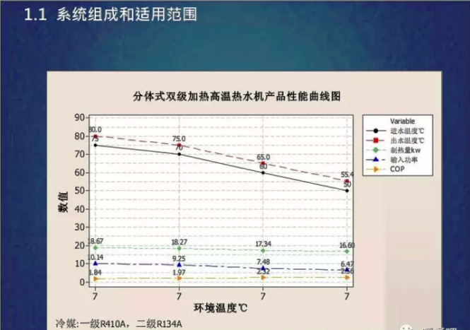 -空氣源熱泵冬季在室外較低溫度的供暖設計工況下,冷凝溫度和供水溫度有一定限制,因此,設計水溫不能過高。