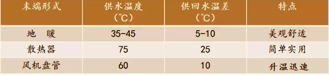 空氣源熱泵出水溫度一般可達到45℃,溫差5℃,所以,更適合空氣源熱泵的供暖末端形式是地暖。