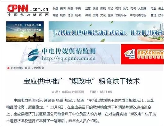 中國電力新聞網:推廣“煤改電”糧食烘干