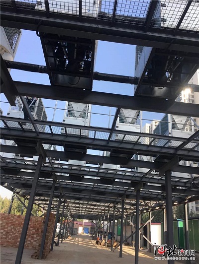 在某青年小區的換熱站內,一排排灰白色的壓縮機“住在”空中的鐵架子上,壓縮機旁邊有鐵絲網通道。這些壓縮機去年還在地面上,利用空氣源熱泵供熱時會形成冷島效應,冷島效應不但影響空氣源熱泵效果還會增加運行成本,去年因為冷島效應導致地面結冰后,光除冰就花了四五十萬元,所以2018年進行二次投資,投資2000萬將空氣源熱泵的壓縮機都架在空中4.5米,這樣2018年供暖將達到最好效果,同時針對空氣源熱泵受環境溫濕度影響,去年在極端天氣情況下制熱量衰減的問題,2018年新上了3000千瓦的電鍋爐作為備用熱源。