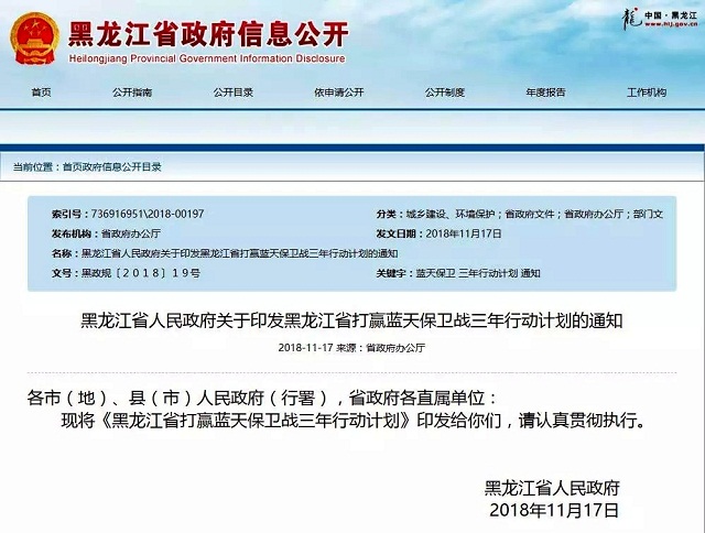黑龍江省打贏藍(lán)天保衛(wèi)戰(zhàn)三年行動計劃