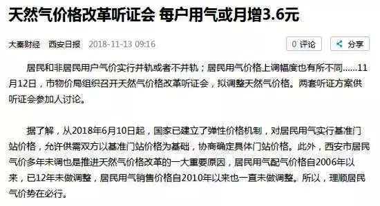 近日,西安舉行了天然氣價格改革聽證會。據了解,目前西安居民用氣一階氣價每立方米1.98元,非居民氣價(不限量)每立方米2.30元;在集中采暖方面,小區自備鍋爐氣價為1.98元/立方米,市政集中供暖氣價為2.04元/立方米。