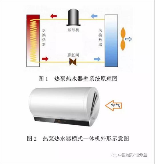 熱泵熱水器一體機由空氣源熱泵系統和水箱構成,相對于傳統的電熱水器,增加了冷媒系統,系統原理圖如圖1所示。由于家用壁掛式安裝承重限制及外觀要求,通常外形與傳統電熱水器相同,如圖2所示。