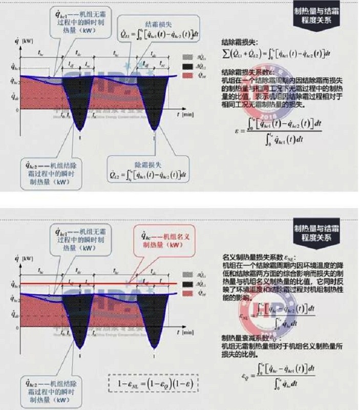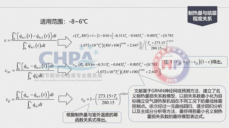 在-15℃到-8℃數學模式的圖上可以看到,結霜的損失系數用一個符號來代表,結霜的損失一定影響了它的名義制熱量,所以,它有一個損失系數,會影響到整個制熱量的衰減。有了數學模型就可用進行數學計算,去解決這樣的物理現象。