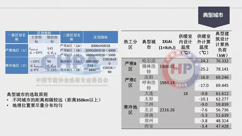 為此,我們首先做了室外計算溫度日內熱量供需關系的分析,選擇了一個計算的建筑;然后,針對不同城市的典型建筑,做了一個關于熱泵的初選,計算它的供需關系。